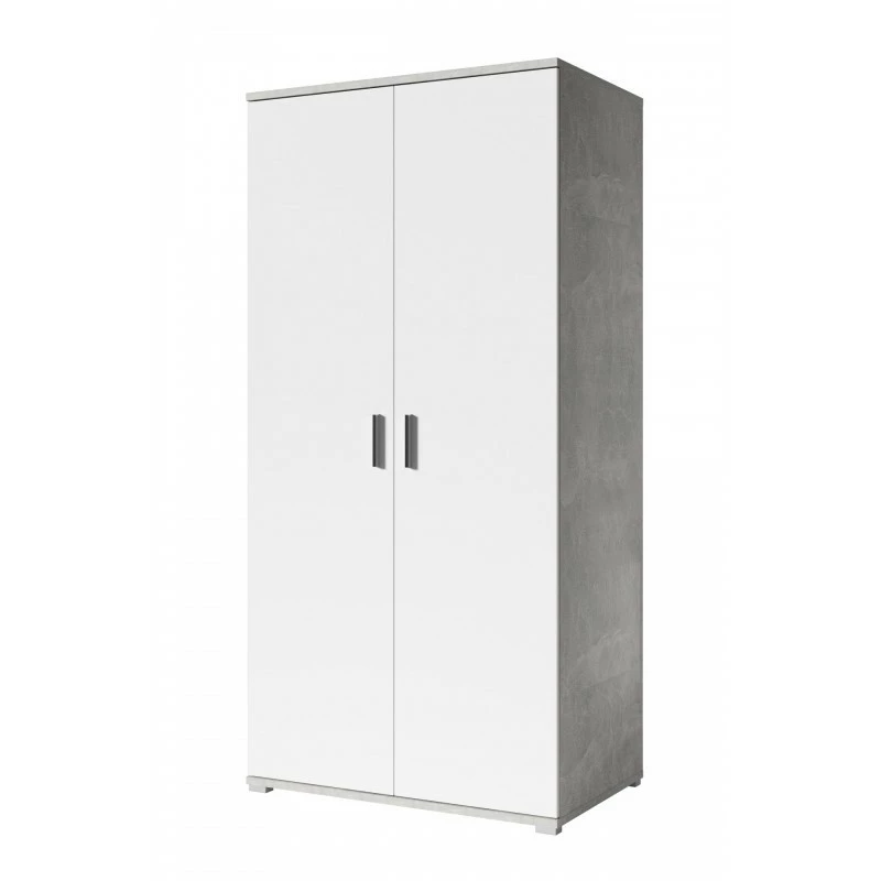 Armoire 2 portes de la collection Soma. Cette armoire blanche et grise dispose d’un espace penderie ainsi qu’un espace rangement de 4 étagères. Sobre et pratique, cette armoire s’intégrera dans n’importe quel chambre enfant.