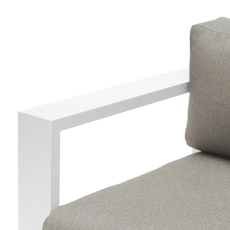La structure est en aluminium traité époxy antirouille. Les coussins polyester 275 g/m² sont déhoussables pour un entretien facile et traités déperlants permettant à l’eau de glisser sans pénétrer dans la matière.