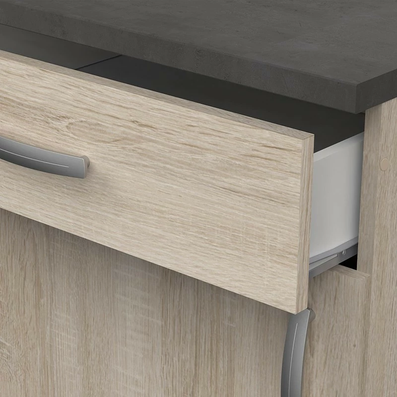 Robuste : le plan de travail mesure 25mm d’épaisseur, le revêtement est 100% mélaminé et résiste à l’eau.