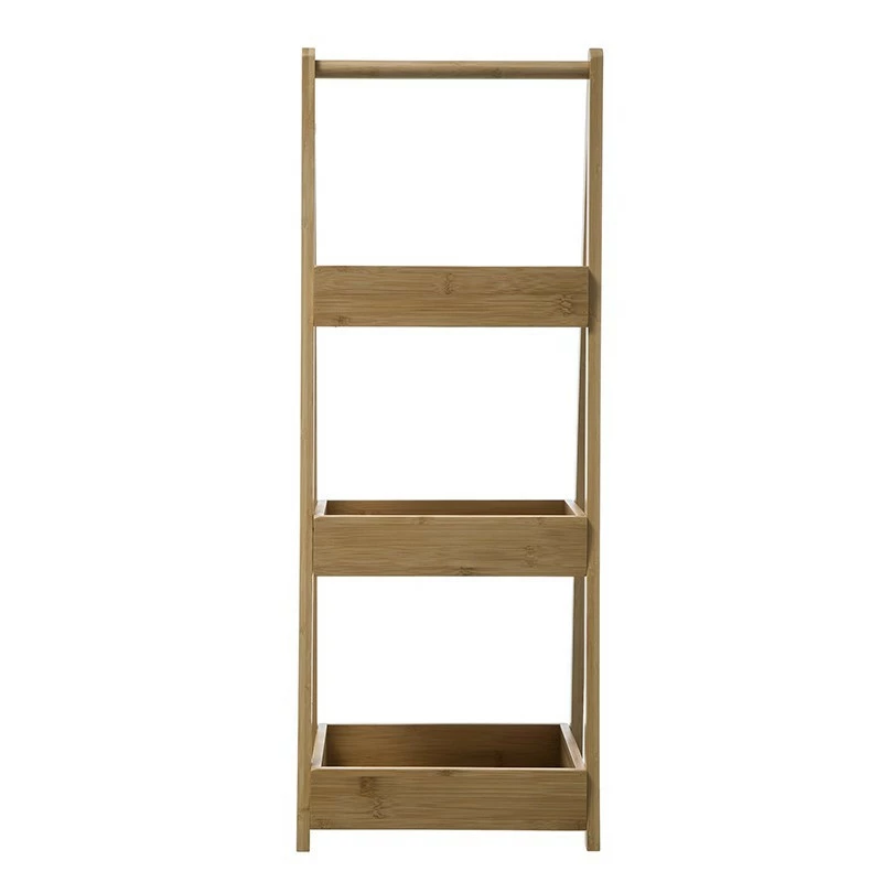 Cette étagère en bambou résiste à l’humidité ambiante et peut être placée dans une salle de bain.