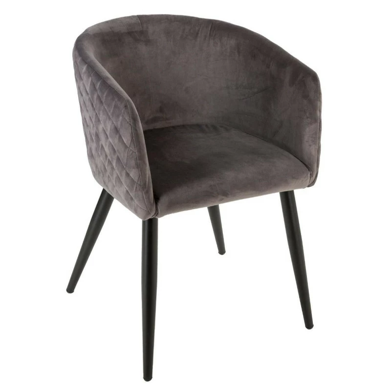 Fauteuil en velours, à hauteur d’assise de 49 cm compatible avec les tables de salle à manger.