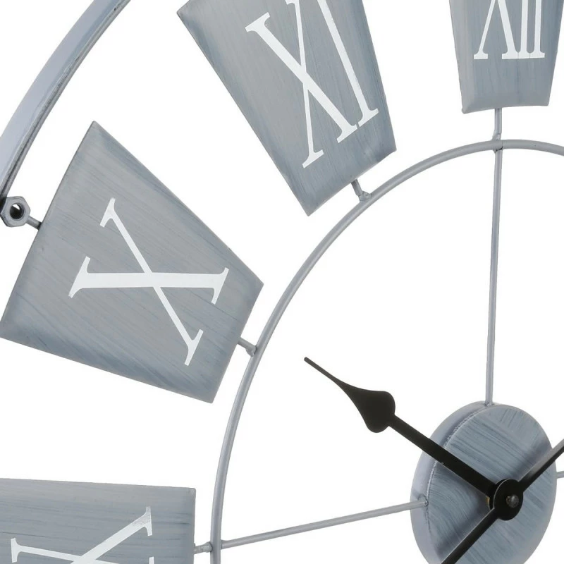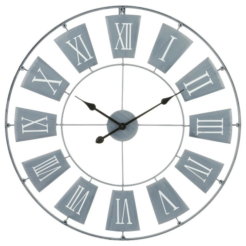 Horloge en métal chiffres romains coloris gris clair. Pour un style moderne et contemporain.