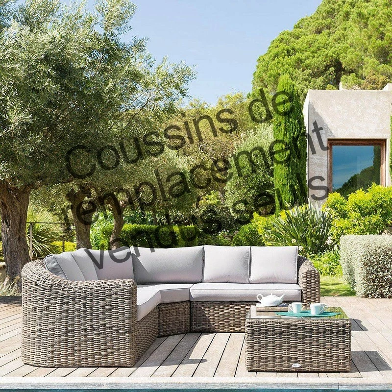 Dimensions : 4 coussins dossier 2 places 49×40 cm + 2 coussins dossier angle 71×40 cm