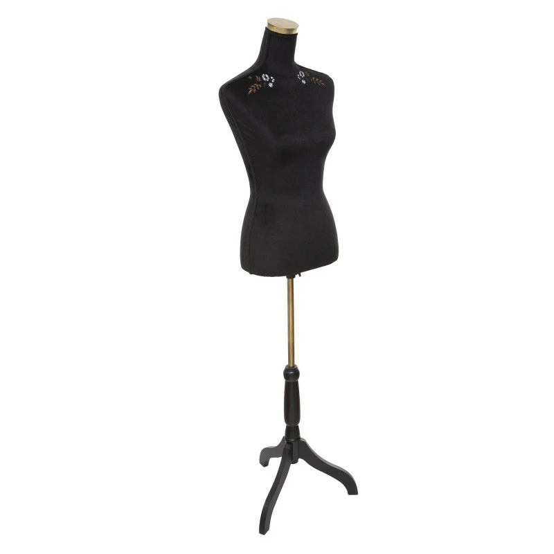 Le velours noir profond ainsi que les décorations fleuries en broderie apportent beaucoup d’élégance à ce mannequin décoratif.