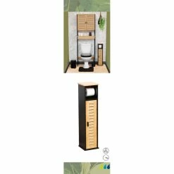 Ce meuble sous lavabo en bambou et MDF dispose d’une étagère intérieure.