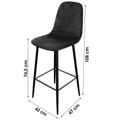 Tabouret De Bar En Velours Noir Pieds Métal Inoui