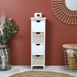 Chiffonnier 4 Tiroirs Chic Naturel Et Blanc