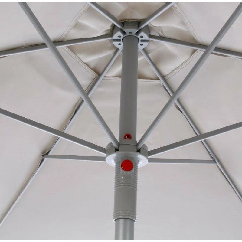 La toile du parasol dispose d’une cheminée d’aération pour limiter la prise au vent et est traitée contre la décoloration.