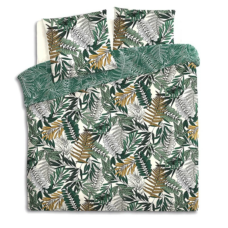 Cette parure très tendance avec ses motifs tropicaux, apportera une touche moderne dans votre chambre. N’hésitez pas à ajouter des coussins et oreillers moutarde pour un style certain.