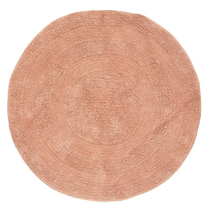 Tout en douceur, ce tapis en coton rond de 120 cm coloris rose orangé apportera une touche cocooning à la pièce.