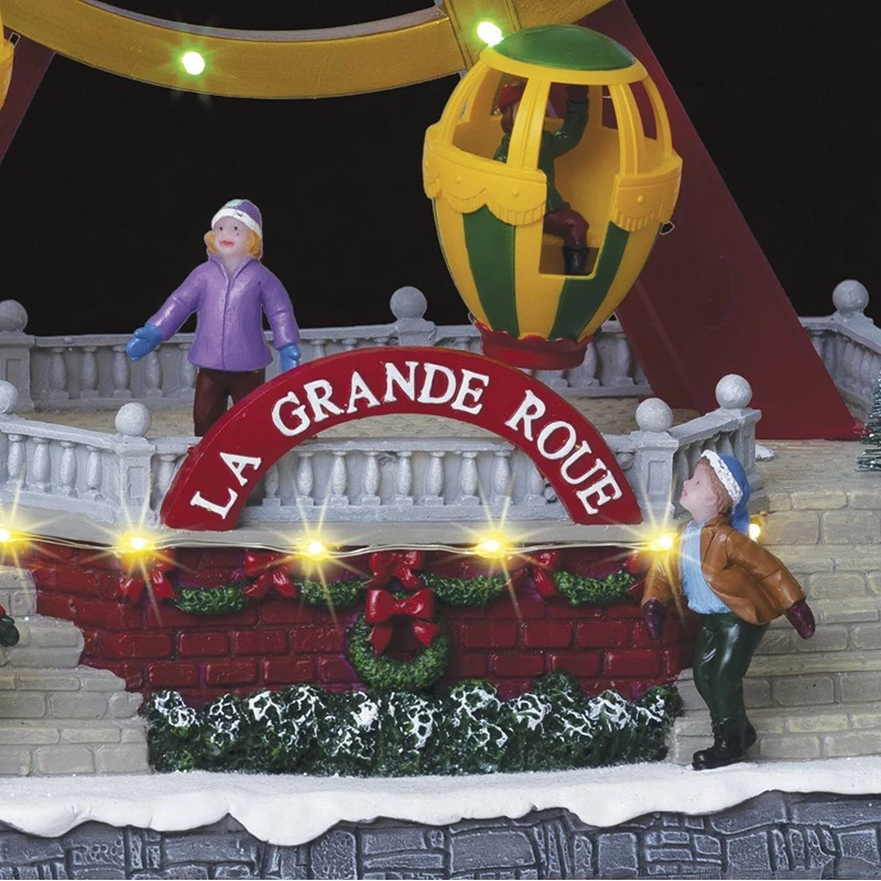 Village de noël animé, lumineux et musical grande roue. Ce qui amènera l’esprit des fêtes foraines de noël dans votre foyer.